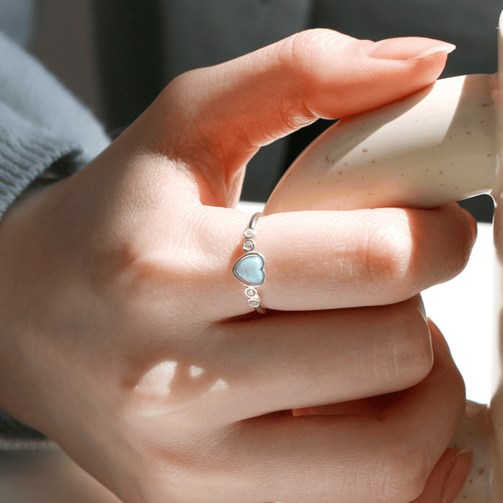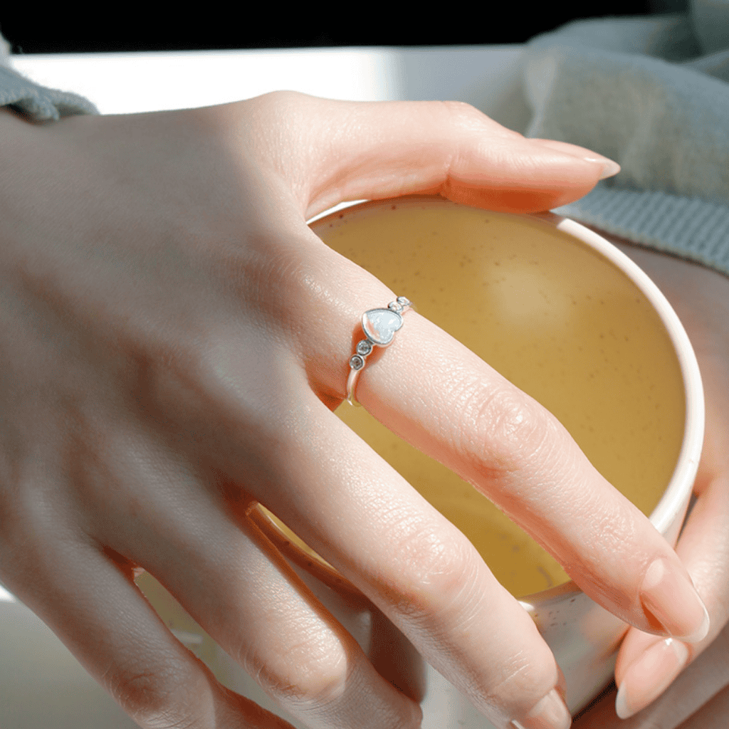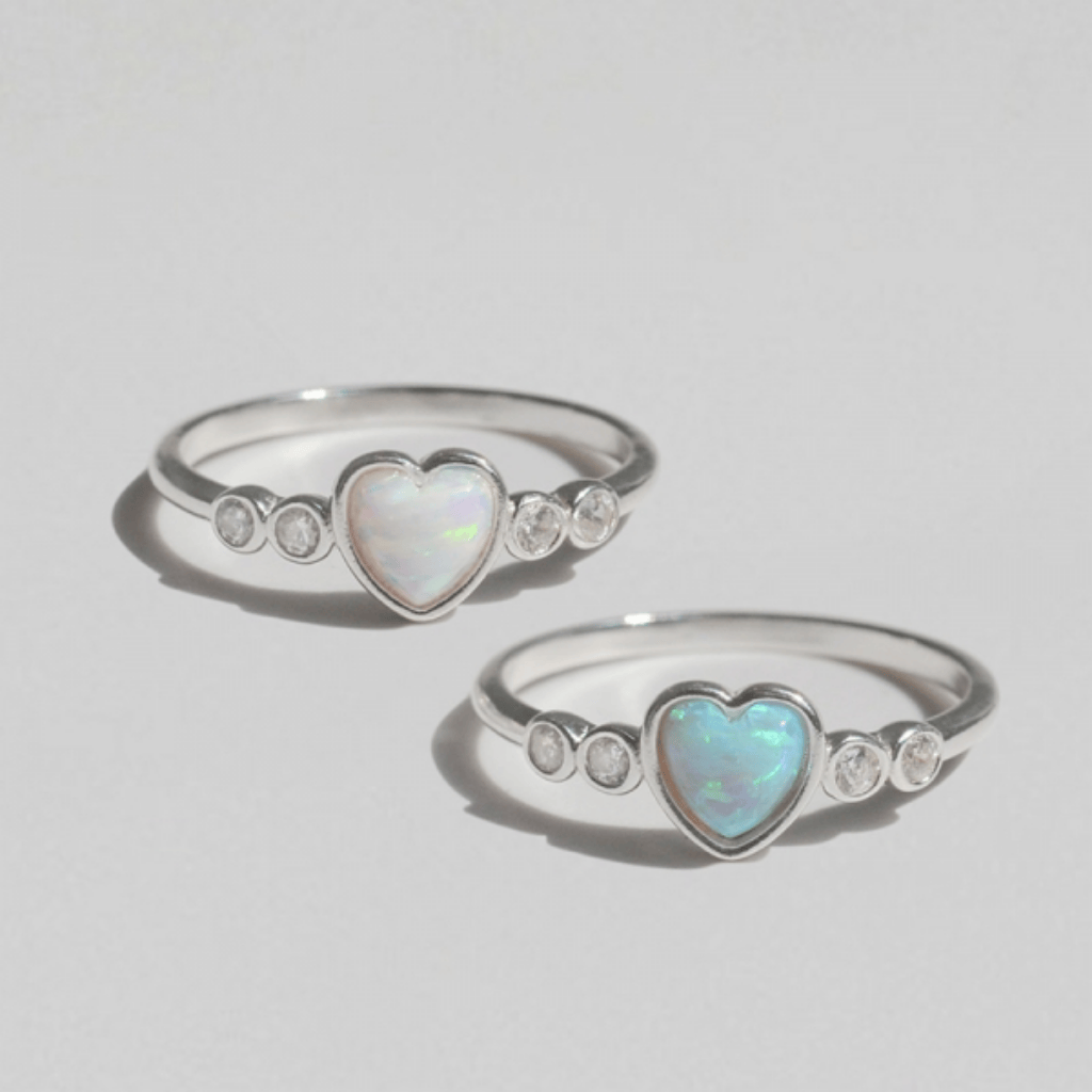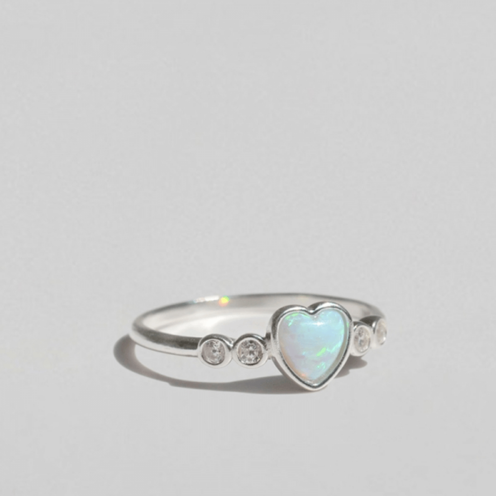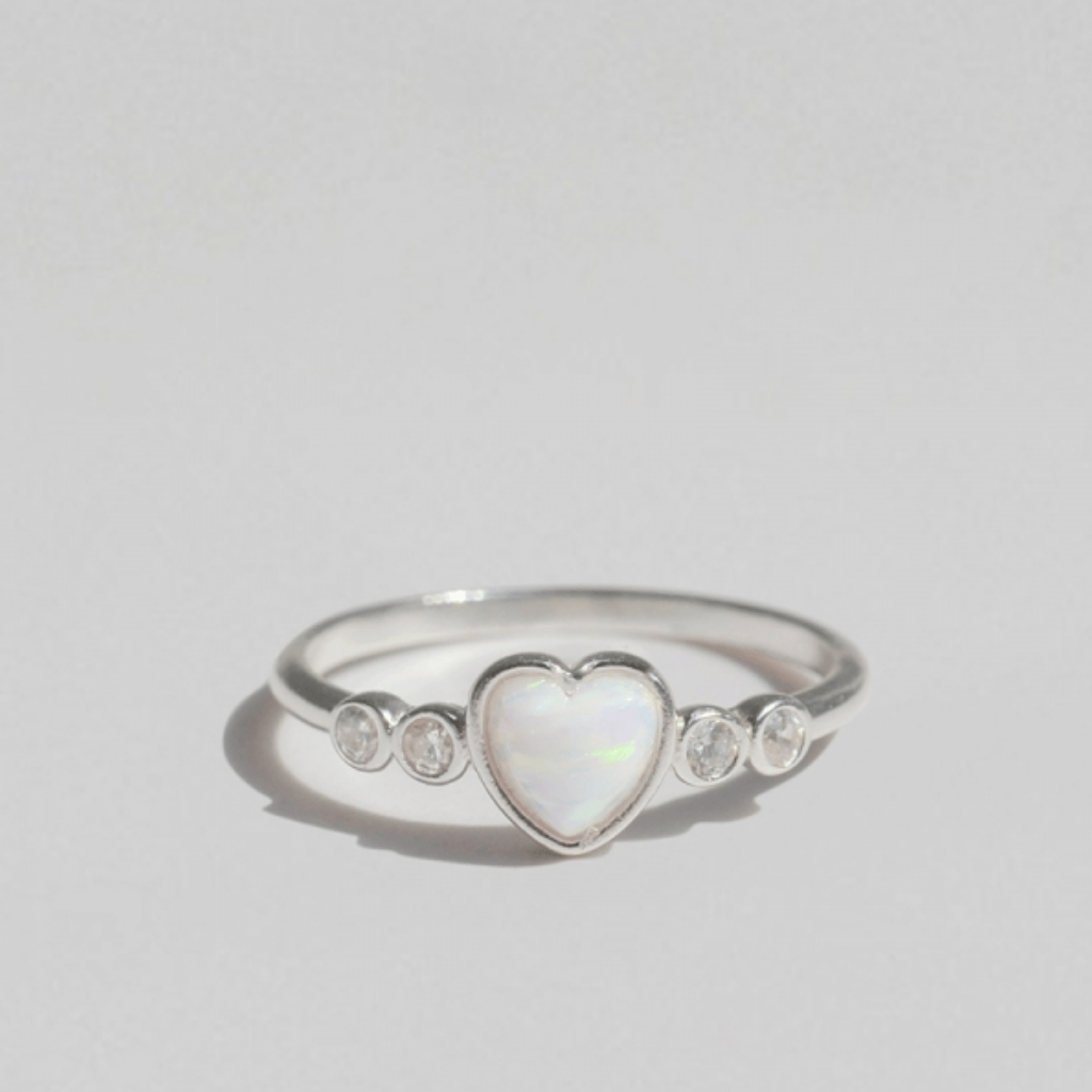 ✨ 純銀戒指|心形歐泊石 (Opal)|水鑽