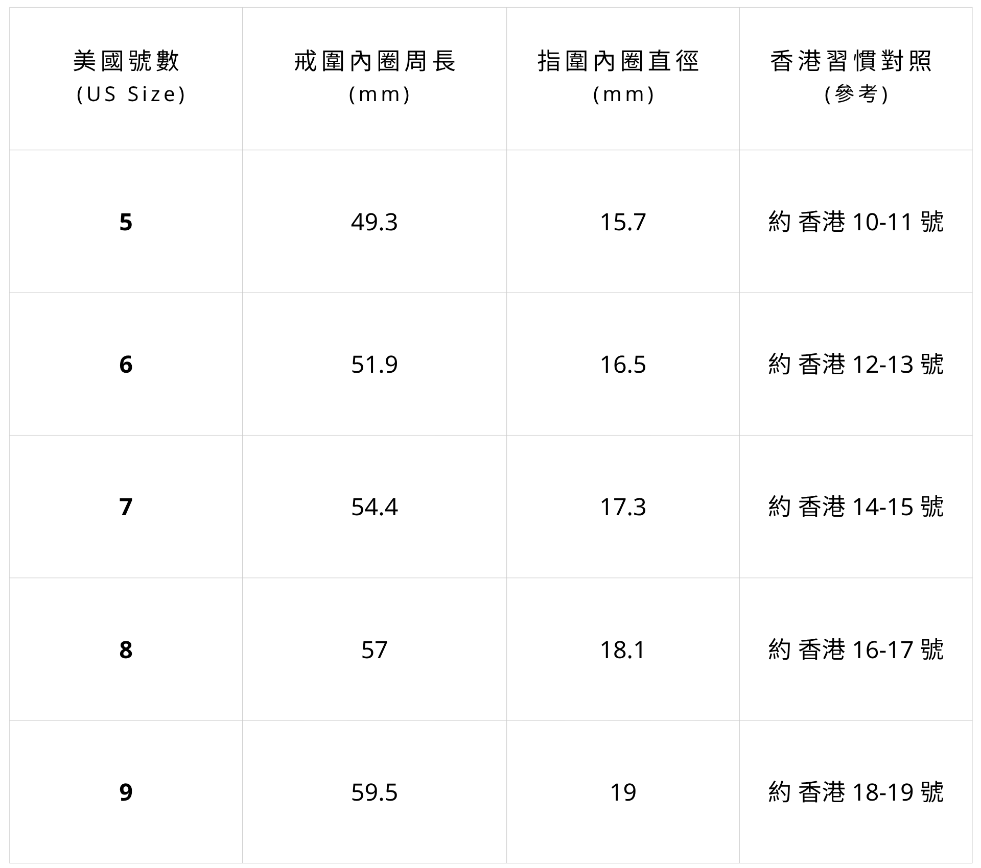 戒指尺寸對照表