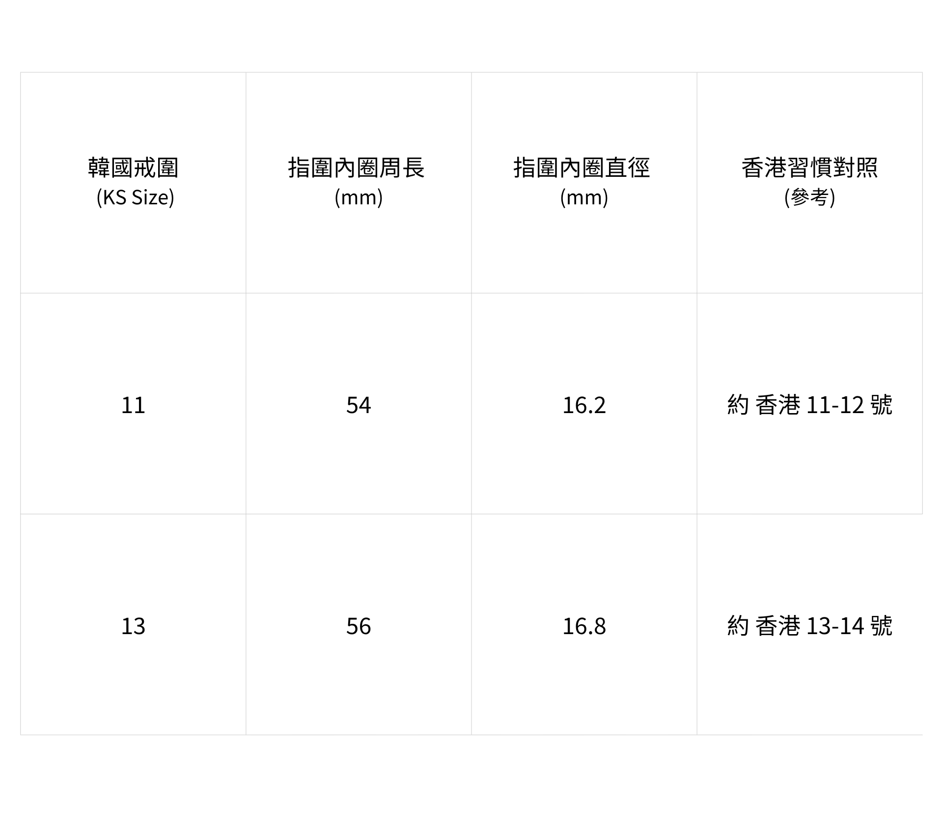 戒指尺寸對照表