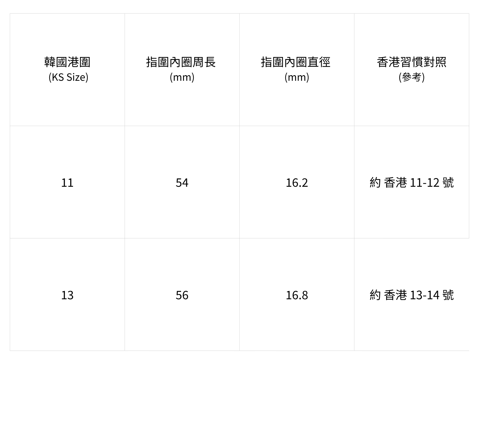 戒指尺寸對照表