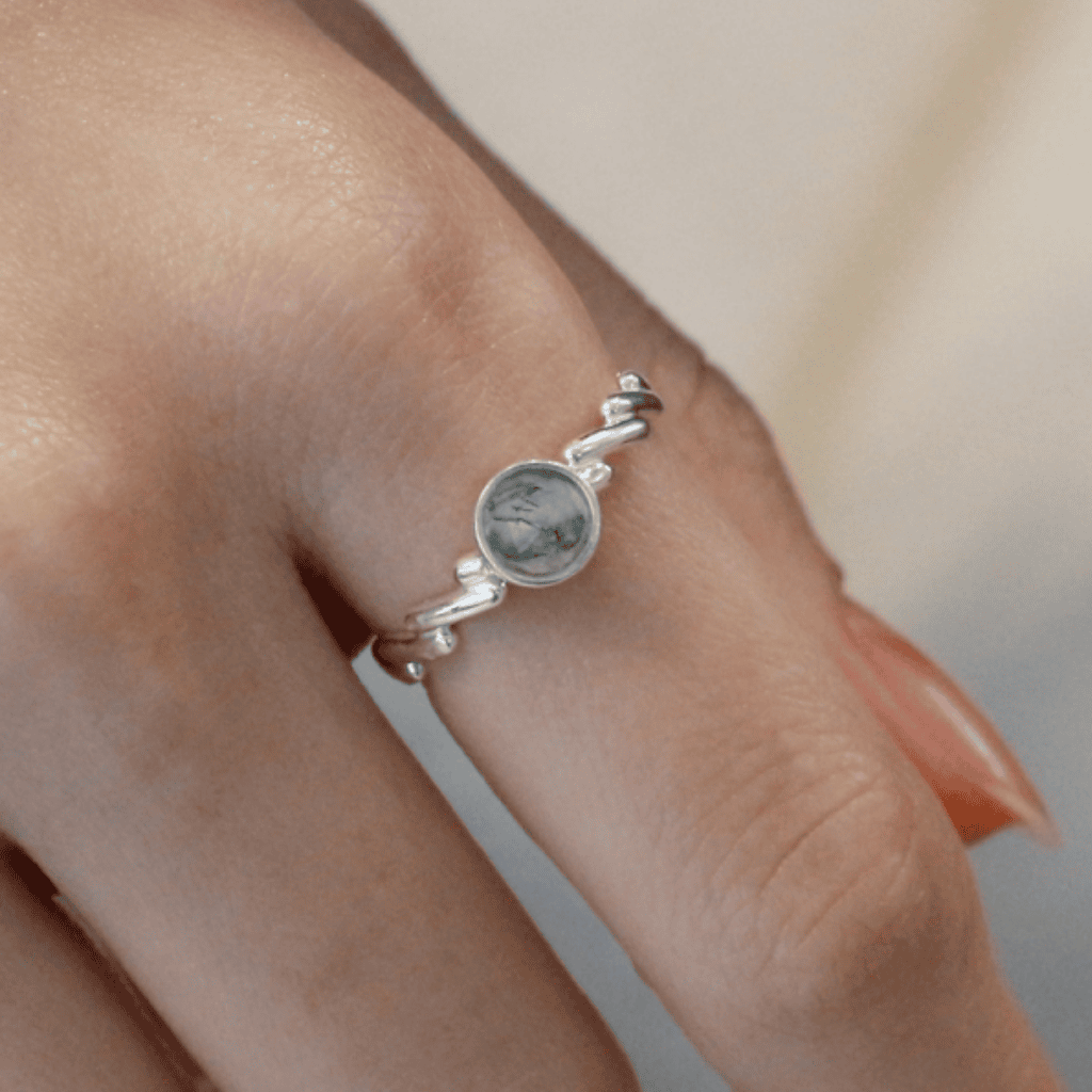 🫧 925 純銀 | 天然苔蘚瑪瑙 | 復古精緻戒圈 | 固定戒圍設計