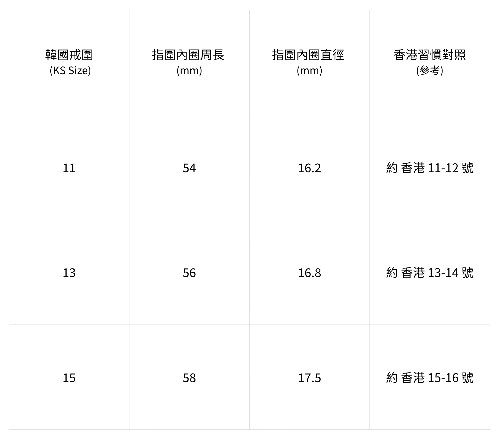 戒指尺寸對照表